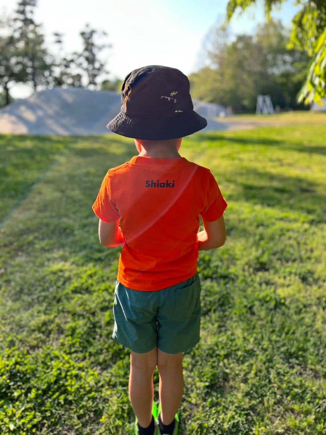 胸元の33の指は刺繍、後ろのshiakiの文字はプリント。
